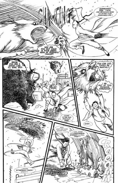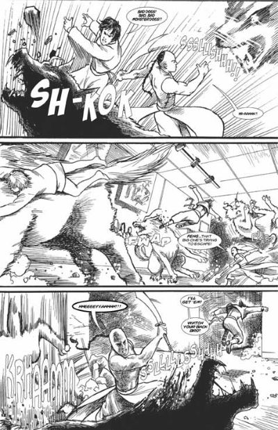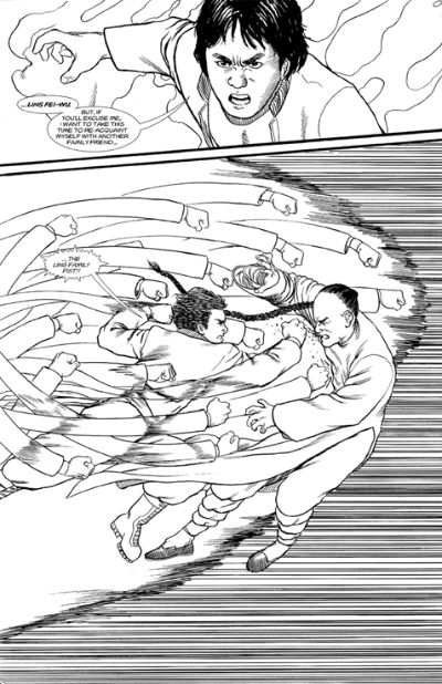 At long last, the critically acclaimed comic book returns to the printed page with an adventure long in the making--litterally! In 1847, Buddhist monks, aided by members of the heroic Ling Family, fight a pitched battle to rid China of monsters that are feeding on the populace. In 2005 members of the heroic Ling Family fight a pitched battle to rid Chicago of monsters that are feeding on the populace! What's the difference between then and now you ask? Canton Kid! And the Kid kicks A$$! Set in a neo-futuristic Chicago, Canton Kid is a thrilling combination of classic Hong Kong Cinema action and tongue-in-cheek action!